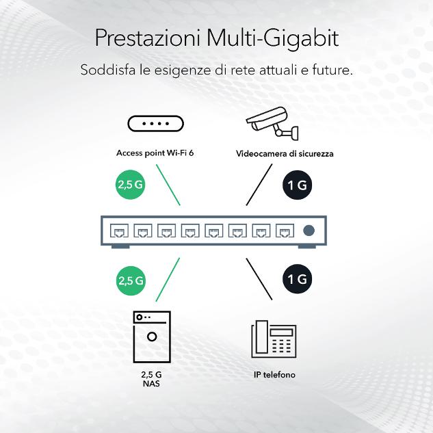 - Porte in rame multigigabit : 8 (1G/2.5G)