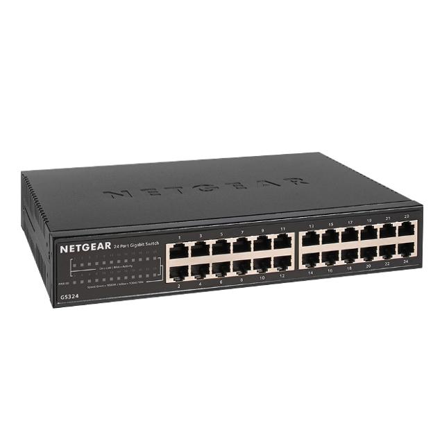 Switch NETGEAR Essentials con 24 porte Gigabit Ethernet. Questo switch è plug-and-play con porte non gestite che non richiedono alcuna configurazione aggiuntiva e prestazioni complete senza blocchi.