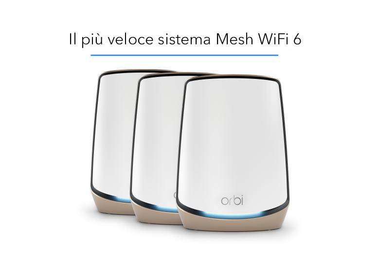 Sistema Mesh WiFi 6 Tri-Band Orbi serie 860, 6Gbps, porta da 10 Gig, kit da 3, con NETGEAR Armor per 1 anno incluso