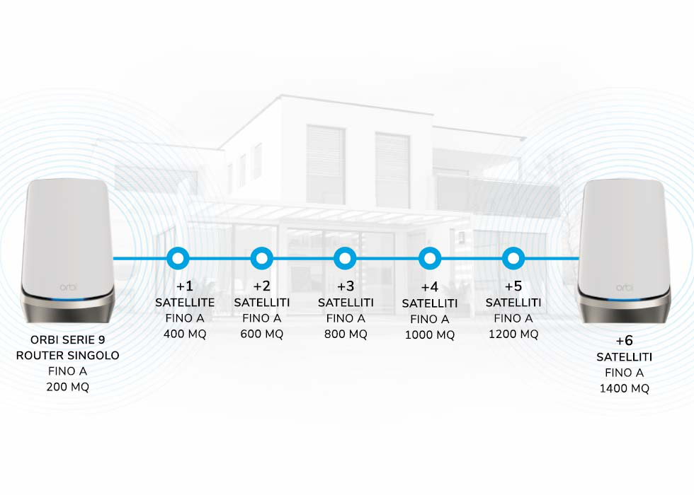 A differenza di un router standalone, un sistema mesh Orbi estende un WiFi veloce, coerente e ad alte prestazioni in tutta la proprietà.