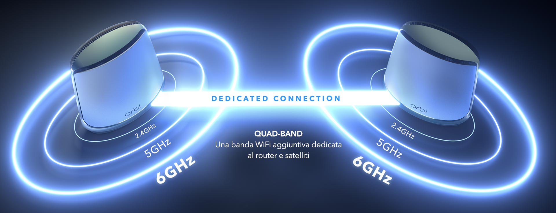 L'esclusiva tecnologia quad-band con backhaul dedicato garantisce velocità WiFi massime per un massimo di 200 dispositivi connessi