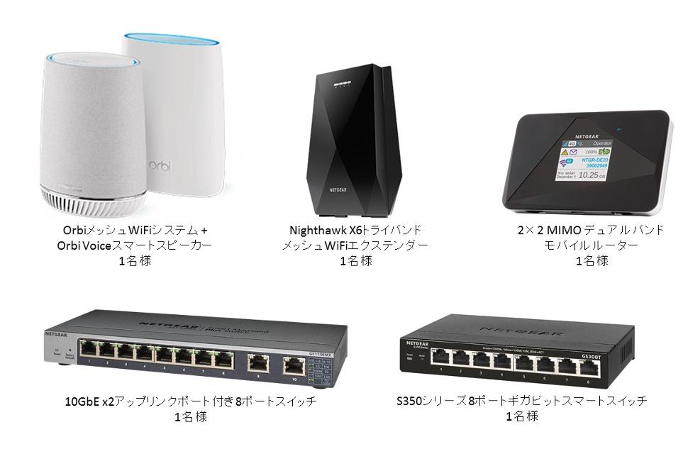 - 名称: 好きな商品を選んで当たる!5名様にネットギア製品をプレゼント