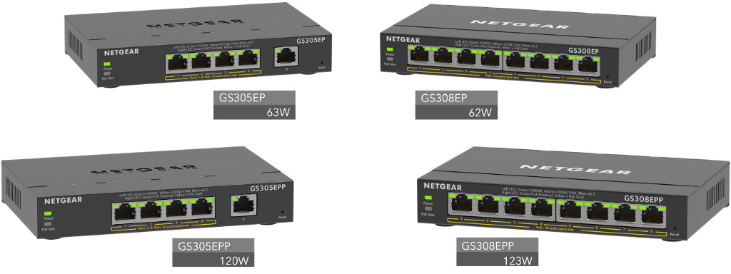 ついにアンマネージプラススイッチに大容量PoE+が登場!8ポート合計123Wまで給電可能な「GS308EPP」など、コンパクトでハイパワーなPoE+スイッチ4機種が本日発売!