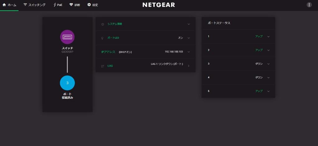 - webページ:https://www.jp.netgear.com/business/products/switches/web-managed/gs305epp.aspx