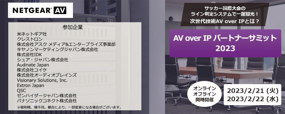 先進的なネットワーク機器をグローバルに提供するNETGEARの日本法人、ネットギアジャパン合同会社(所在地:東京都中央区、代表:杉田 哲也、以下ネットギア)は、AV over IPソリューションをご提案いただいているシステムインテグレーター様および販売店様とメディアの皆様を対象として、「AV over IPパートナーサミット 2023」を2023年2月21日(火)と2月22日(水)の2日間、ネットギアジャパン本社で開催する運びとなりました。本セミナーはオンラインでもご参加いただけます。
