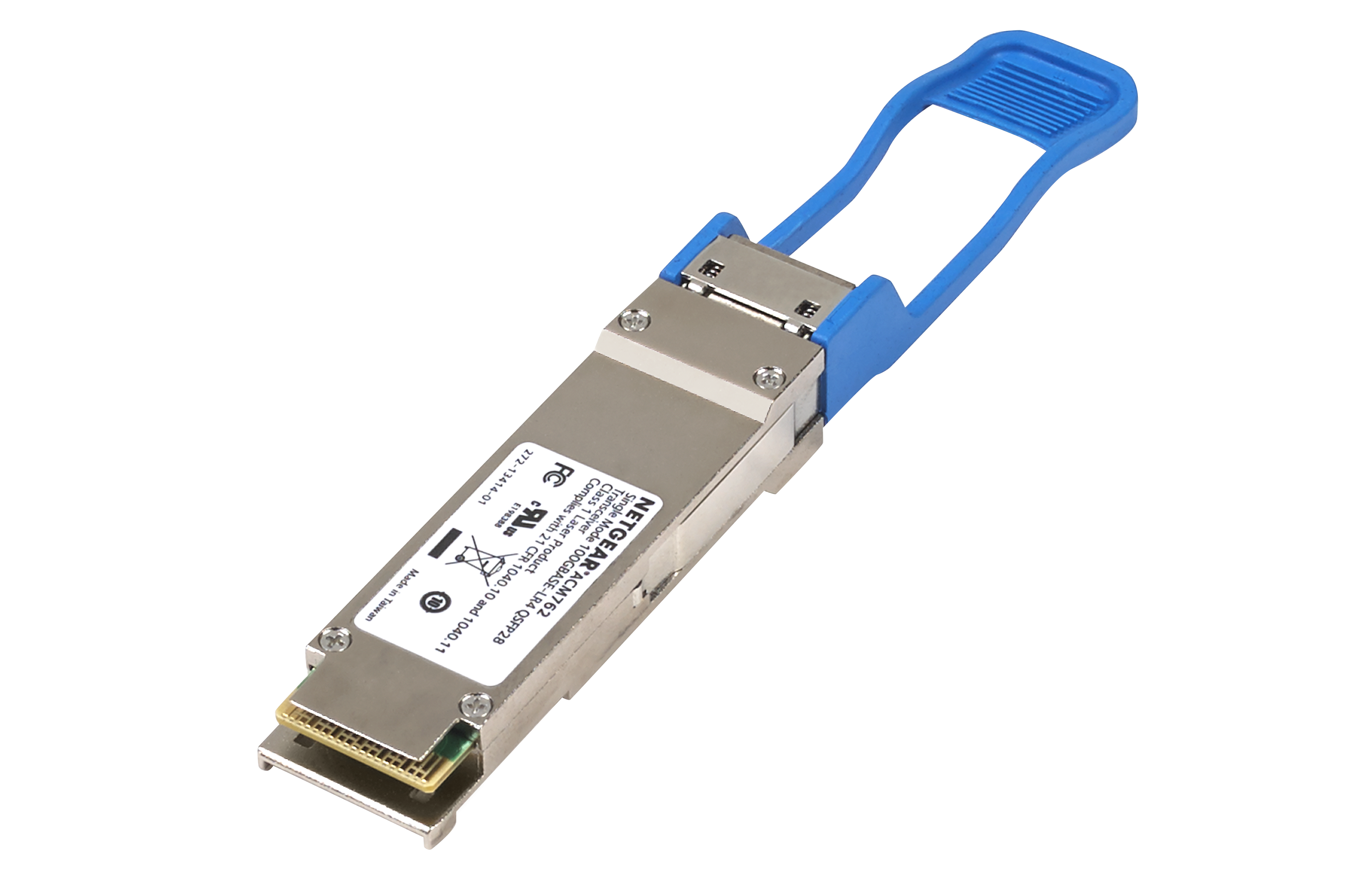 NETGEAR 100G QSFP28モジュールは、QSFP28スロットを搭載したネットギアスイッチに装着して使います。最大伝送距離10kmまでのファイバー接続を提供。ホットプラグ対応。