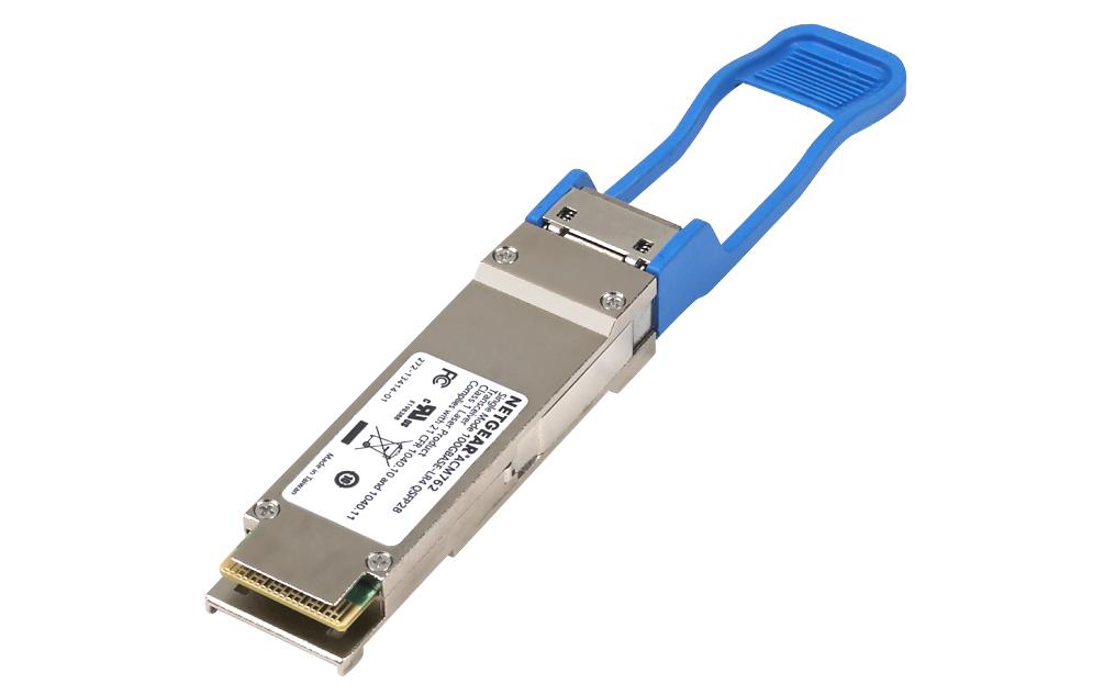NETGEAR 10ギガビットQSFP28モジュールは、QSFP28スロットを搭載したネットギアスイッチに装着して使います。