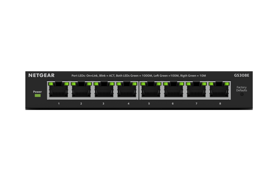 8つのポートが有線デバイスにギガビットイーサネット接続を提供します。エネルギー効率