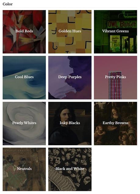 '볼드 레드(Bold Red)', '쿨 블루(Cool Blue)', '얼씨 브라운(Earthy Brown)' 등 총 11가지 컬러를 테마로 한 전 세계의 명화 및 사진 작품을 플레이리스트로 만들어 제공한다. 세계적 색채 연구소인 팬톤에서 발표하는 컬러를 주제로 한 다양한 작품을 함께 추천해 줘 분위기나 기분이 따라 컬러 테마를 바꿀 수 있으며 인테리어에도 조화롭게 활용할 수 있다.