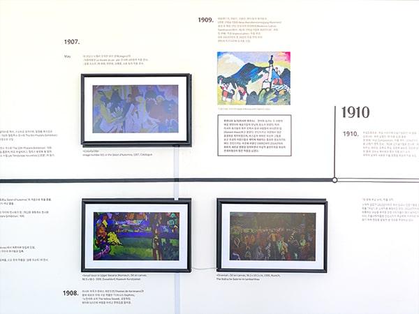 이번 미디어아트에는 뮤럴 캔버스 4대가 전시되어 있다. 여기에 뮤럴 멤버십 서비스를 통해 전 세계 박물관과 미술관의 제휴를 통해 제공되는 콘텐츠로 칸딘스키의 초기 작품과 대표 작품들을 아카이브 형식으로 띄워 주는 전시 초입 파트를 구성했다.