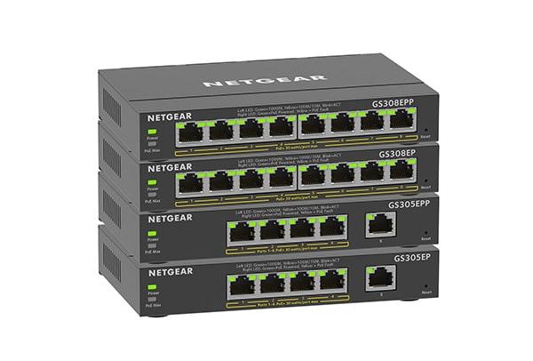 넷기어 GS305EP, GS305EPP, GS308EP, GS308EPP 제품들은 팬 없이 작동하여 쾌적하고 조용한 사무실 환경을 보장하며 견고한 메탈 케이스 디자인으로 내구성을 향상시킨 제품이다. 네트워크 상태 파악이 용이한 LED 지원 및 5년 품질 보증 제도를 통해 가정 및 SOHO 사무실에 안성맞춤인 제품이다.