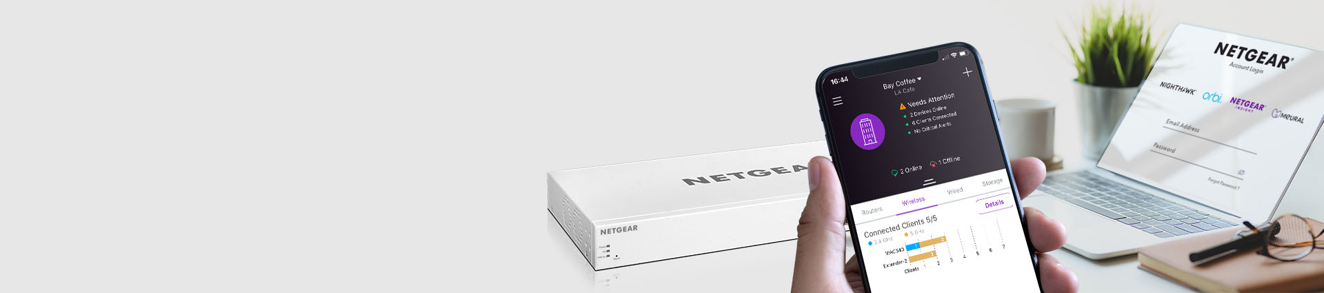 *Alle NETGEAR-apparaten kunnen worden geregistreerd bij de Insight-app, maar alleen apparaten die zijn gelabeld als Insight-beheerbaar kunnen op afstand worden beheerd en bewaakt met de mobiele app van Insight en de Insight-cloudportal.