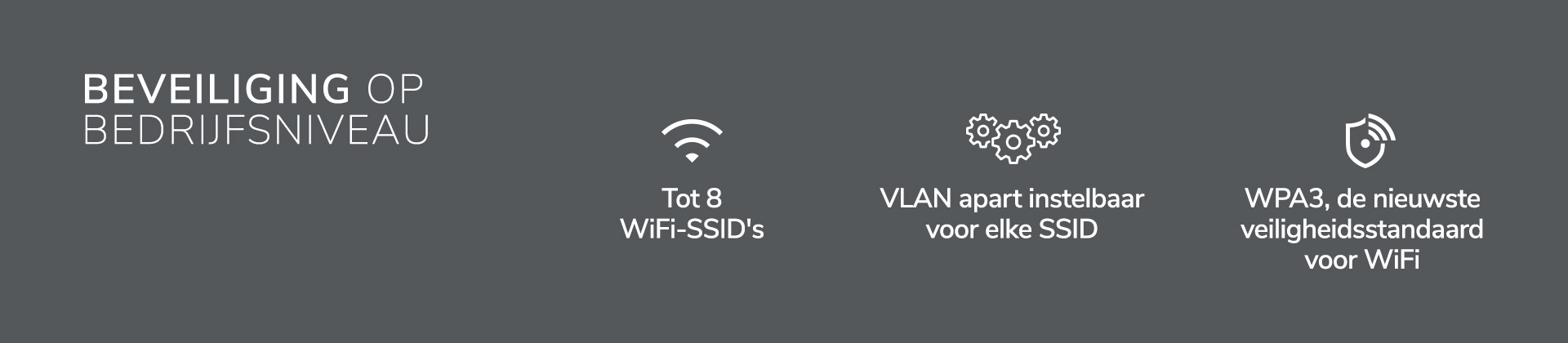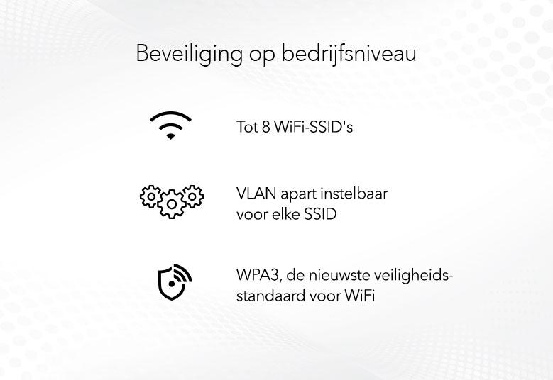 • Flexibele VLAN-configuratie op alle 8 SSID WiFi-netwerken