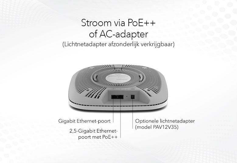 2,5 Gbps Ethernet-poort met Ultra60 PoE++ maakt de snelste verbinding tussen de access point en switch mogelijk