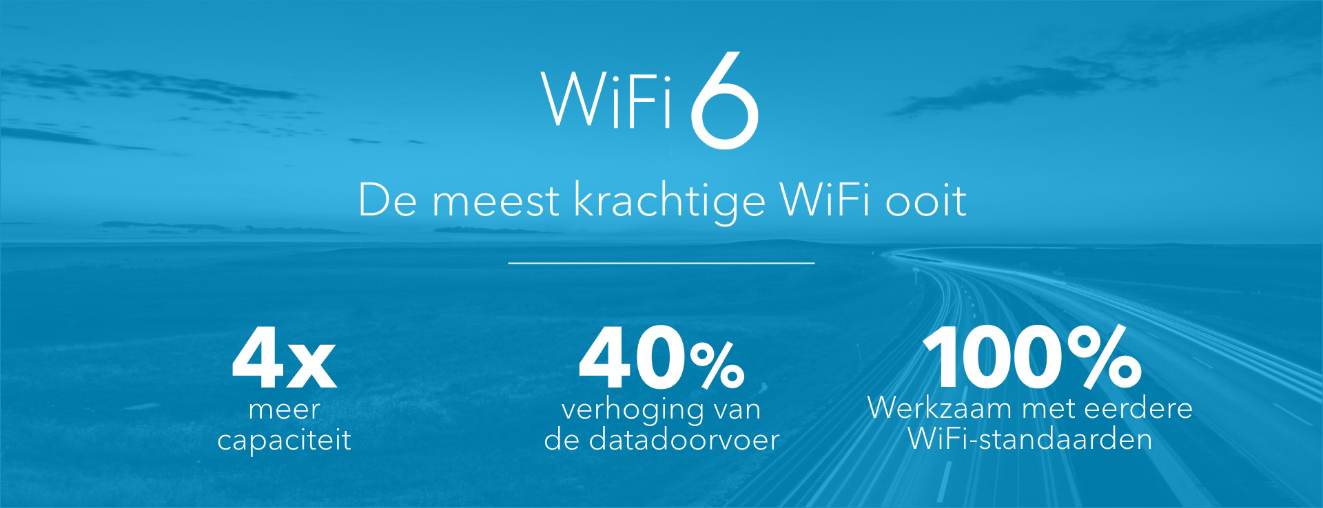 De nieuwste WiFi 6-technologie levert de snelste snelheden voor al uw aangesloten apparaten van vandaag en morgen, met tot wel 4x meer capaciteit dan AC WiFi