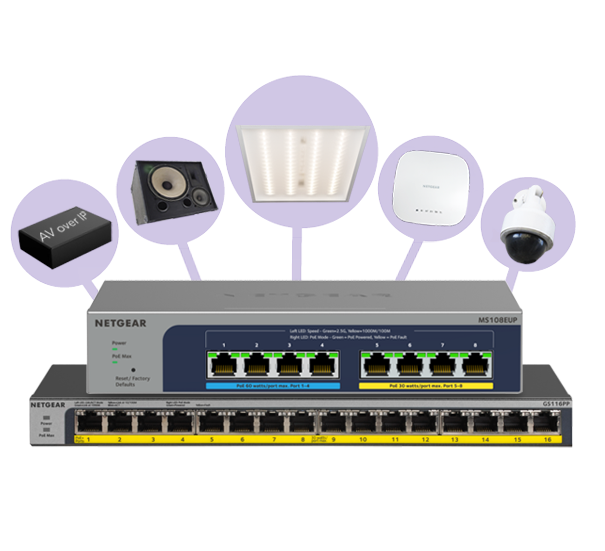NETGEAR has the largest portfolio of PoE switches for SMBs with over 50 different models. Advance your business with cost-effective and easy-to-install PoE devices.