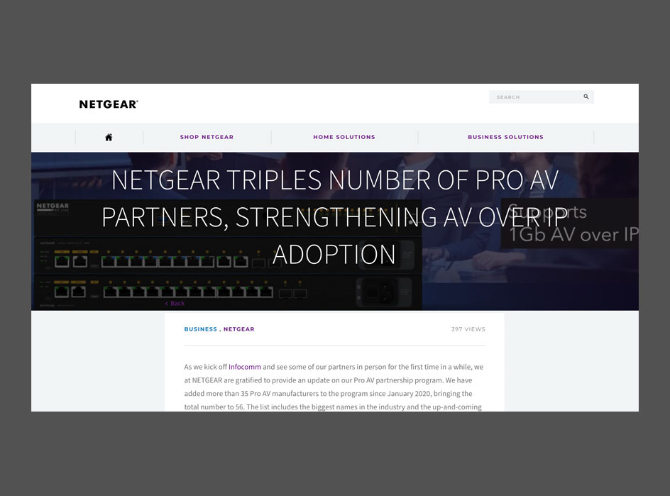 NETGEAR triples number of Pro AV Partners, strengethening AV over IP Adoption