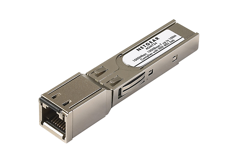 The ProSAFE® GBIC Module fits into standard SFP slots and drives Gigabit Ethernet up to 100m distances with CAT5E/CAT6.