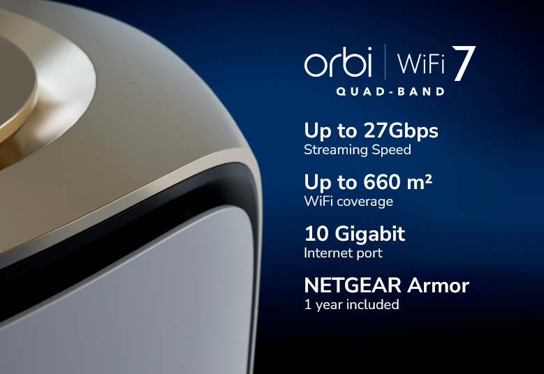Orbi’s unique Enhanced Dedicated Backhaul combines patented Quad-Band with WiFi 7 technology to create a superhighway between router and satellites, ensuring better throughput at a wider range and consistent 10 Gig WiFi across your entire property.