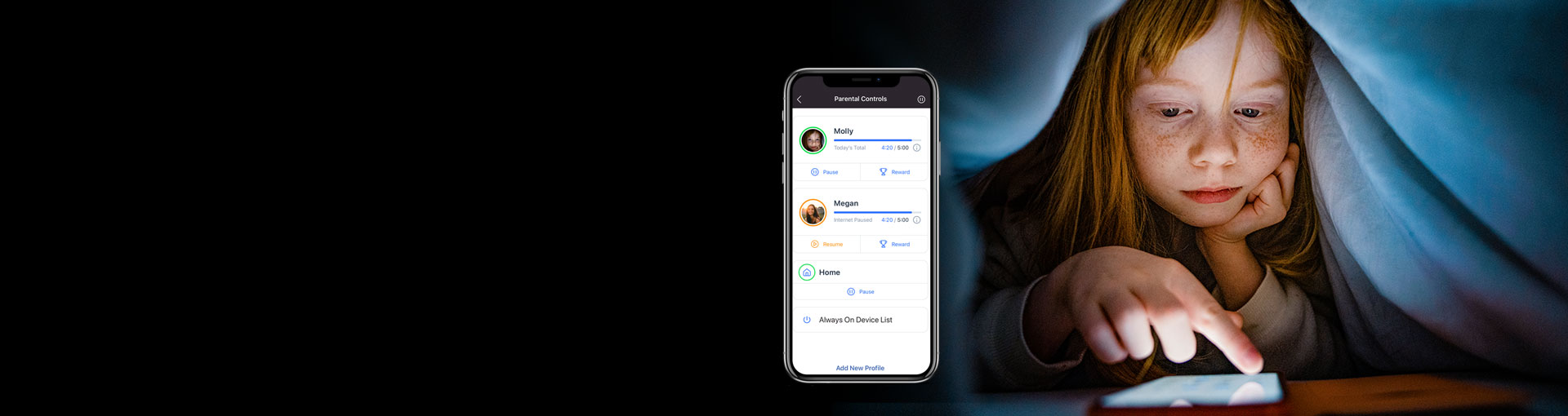 Managing your kids’ time online has never been easier. No need to take away any devices – with just a few taps, you can build profiles for each family member, pause internet on devices, and so much more*. Start building healthy online habits today.
