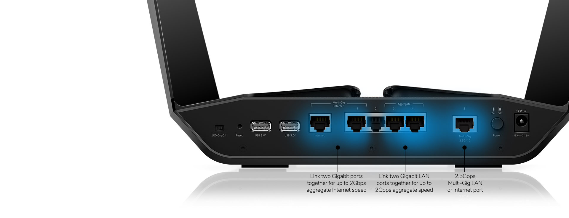 Use the 2.5G Ethernet port or 2Gbps link aggregation to send Gigabit+ speeds to your most demanding devices, and plug even more wired devices into the four additional Gigabit Ethernet ports