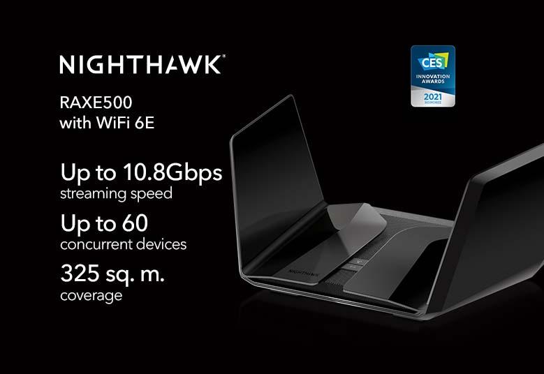 • Nighthawk® AXE11000 Tri-Band WiFi 6E Router (RAXE500)