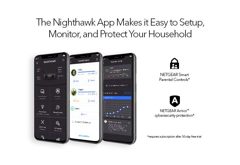 • Security : NETGEAR Armor™: Advanced cyber threat protection for home network and your connected devices††