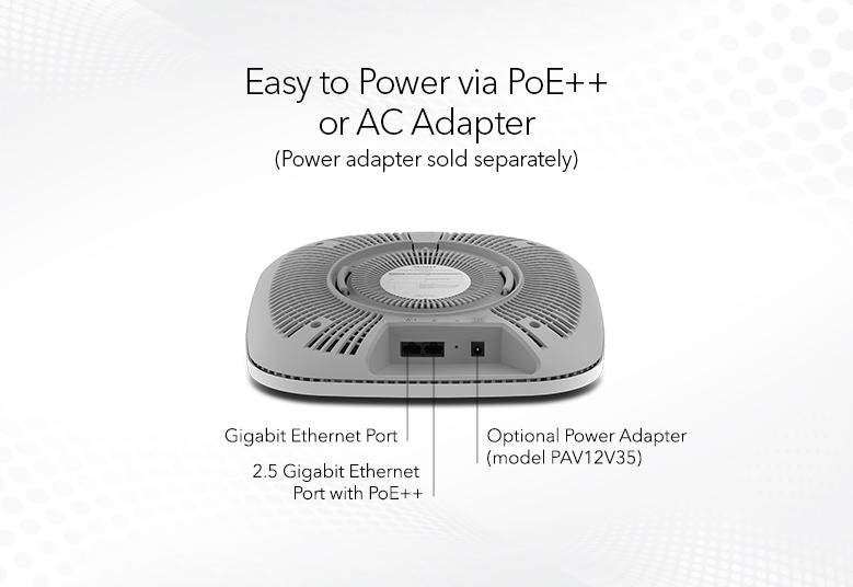 Port Ethernet 2,5 Gb/s z technologią Ultra60 PoE++ zapewnia najszybsze połączenie między punktem dostępu a przełącznikiem
