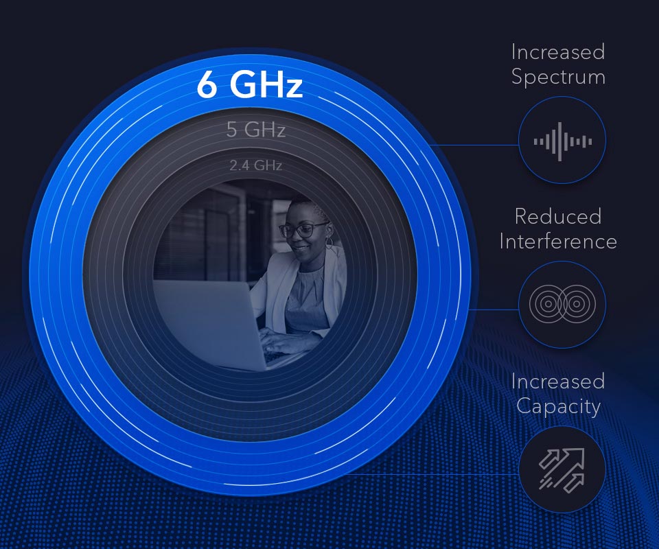 Rozszerzone widmo w paśmie 6 GHz zapewniające szybsze prędkości, większą pojemność oraz mniejsze opóźnienia i przeciążenie
