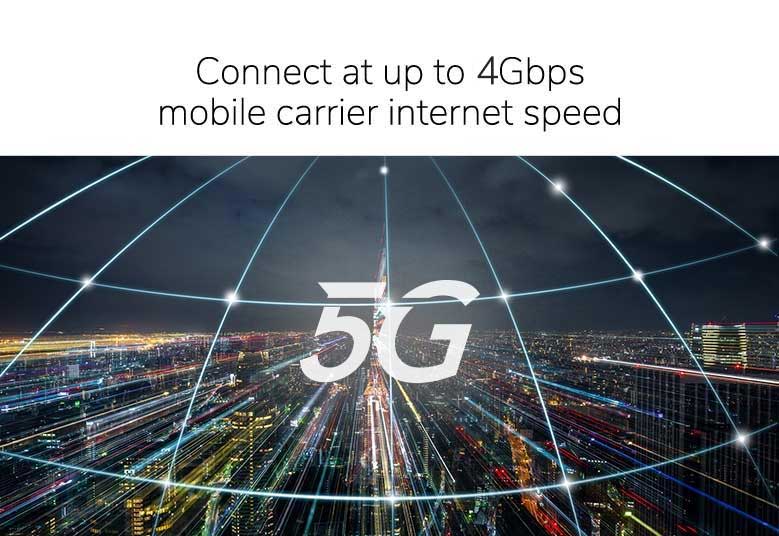 Zasilany przez Qualcomm Snapdragon X65 5G Modem-RF System o przełomowych prędkościach do 4 Gb/s.