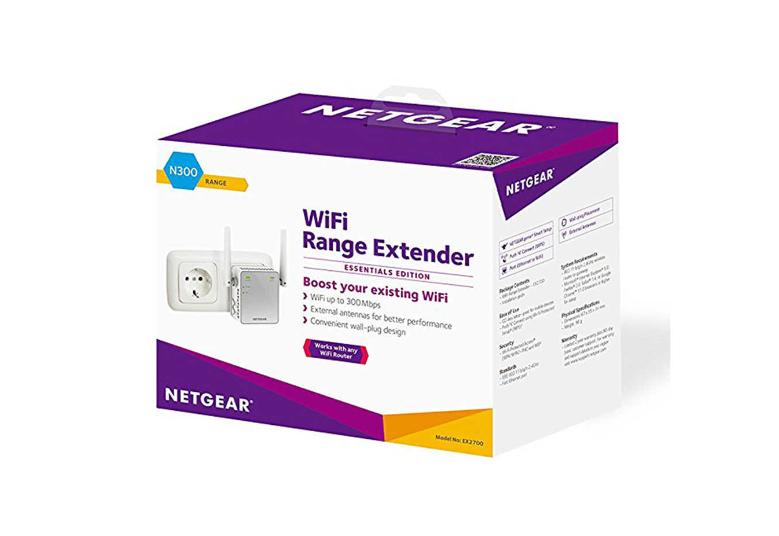 Wzmacniacz sygnału WiFi NETGEAR — Essentials Edition, 300 Mb/s, wtyczka, antena zewnętrzna