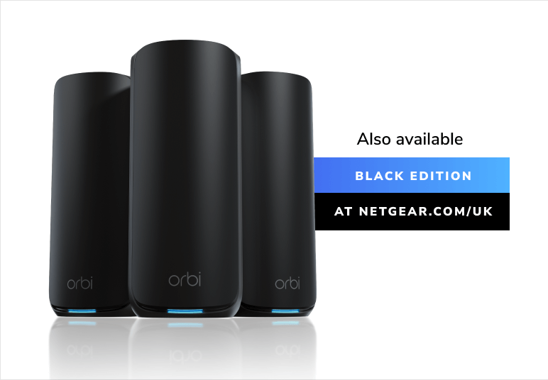 Orbi 970 Series Quad-band WiFi 7 Mesh 3-Pack, Black Edition RBE873 RBE873-100EUS RBE873-100EUS
